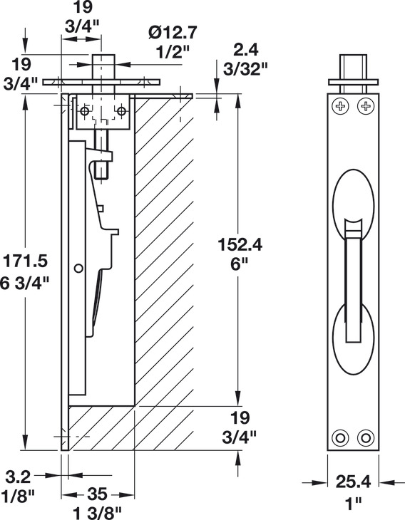 Hafele 911.62.441 Flush Bolt, Lever Action, 19 mm (3/4") Throw, Bronze, Oil-Rubbed (US 10B)