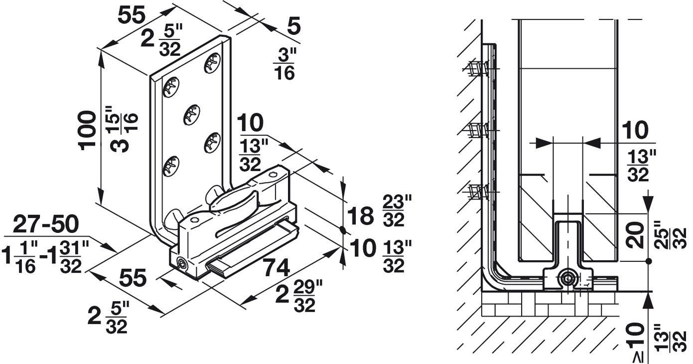 Hafele 940.40.071 Floor Guide, Single Element, Wall-mounted, HAWA Confort 120, 264 lbs. Load bearing capacity, Aluminum, Plastic, Black
