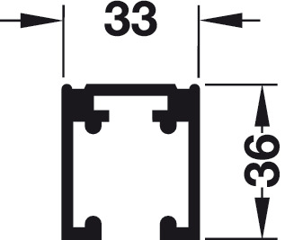 Hafele 940.40.825 Single Upper Track, Pre-Drilled, (1-7/16" x 1-5/16") 36 x 33 mm, 8' 2-7/16" Length, Aluminum, Silver Clored Anodized
