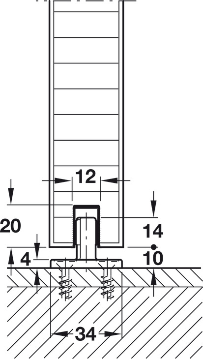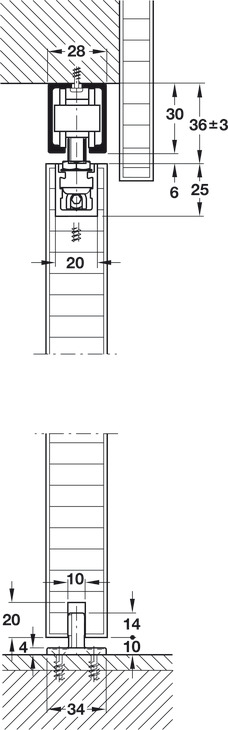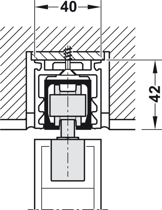 Hafele 940.41.017 Sliding Door Hardware, Hawa Junior 40/B, With Track Buffers on Both Sides, For 1-Leaf Wooden Sliding Doors, Height Adjustable, Min. Installation Height, For Door Weight up to 40 kg (88 lbs.), Set
