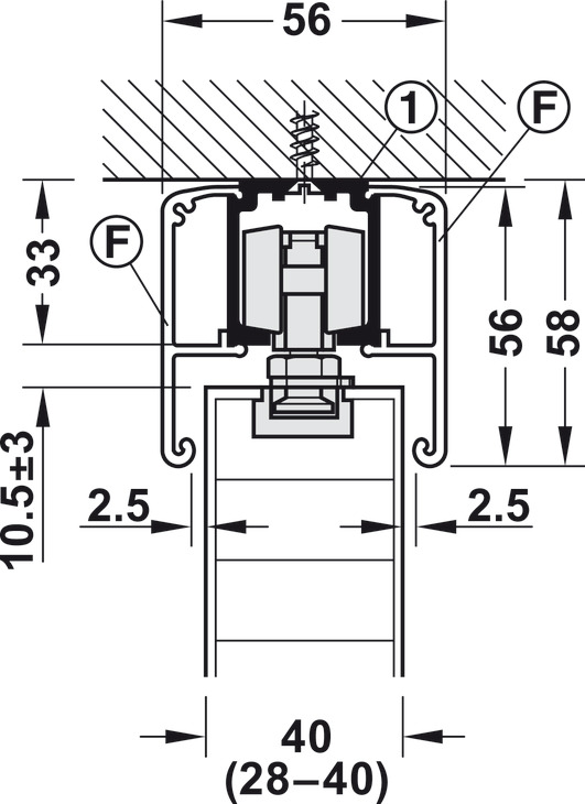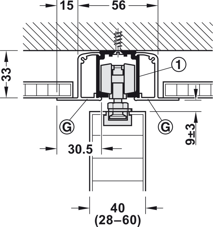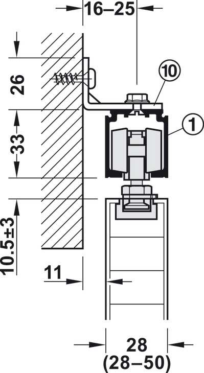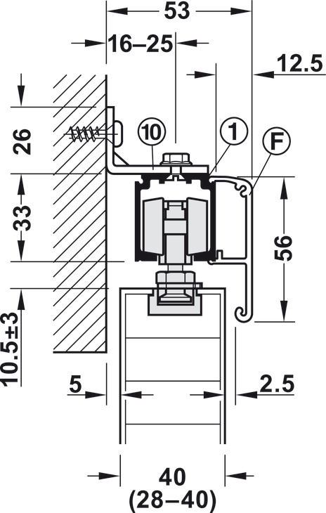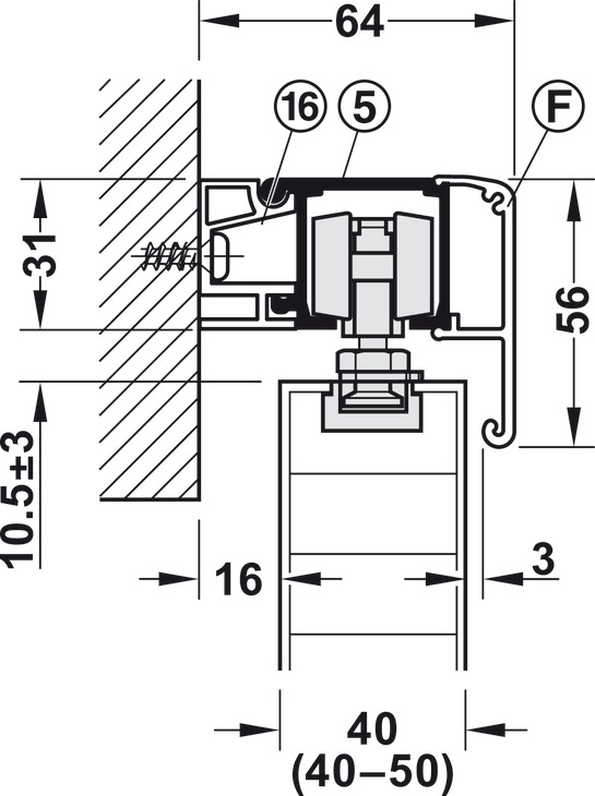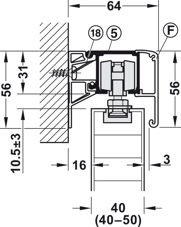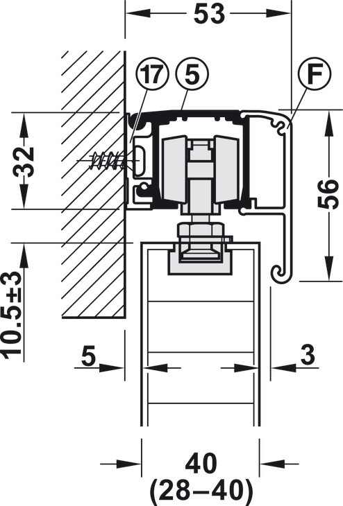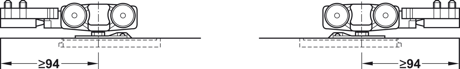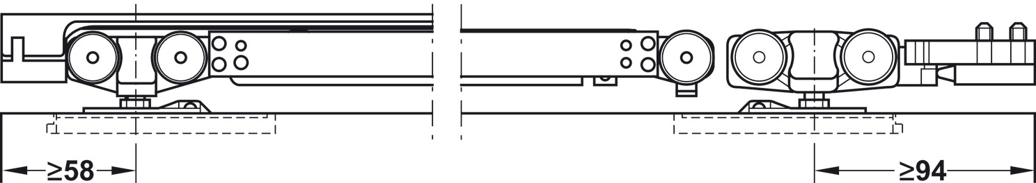 Hafele 940.43.001 Sliding Door Hardware, Slido Classic 40-O, For a Single Sliding Door without Running Track, With Soft and Self Closing Mechanism on One Side, Version B, Door Width = 592 mm (23-5/16"), Set