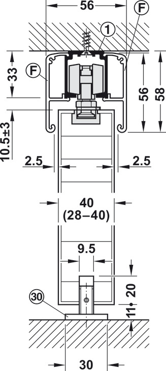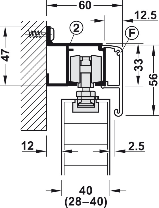 Area of application: For 1 and 2 sliding wood doors