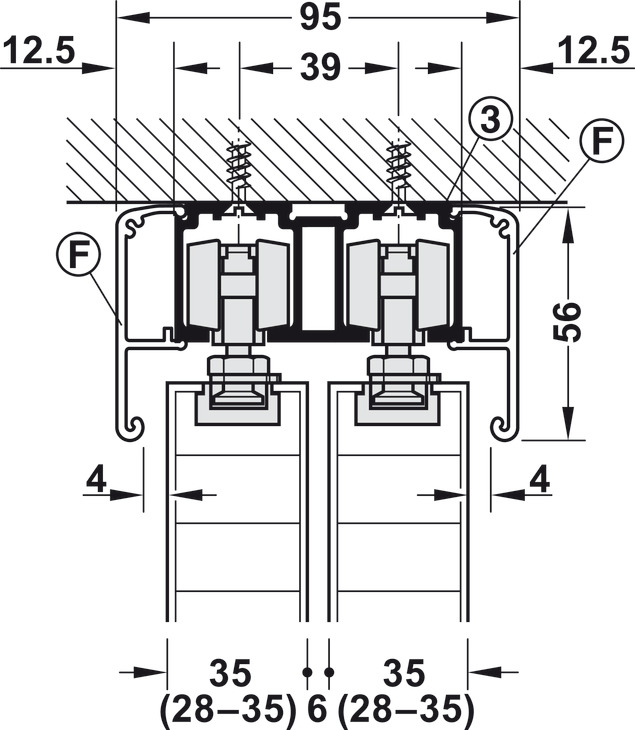 Double Running Track, Pre-drilled, W x H: 81 x 33 mm (3-3/16" x 1-5/16")