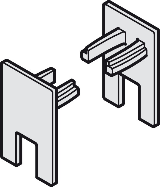 Hafele 940.43.455 End Cap Set, For Glass Clamp Shoe Set, For Hafele Slido D-Line11, For Glass Thickness 8-8.7 mm (5/16" - 11/32") and 10-10.7 mm (25/64" - 27/64"), Plastic, Silver Colored