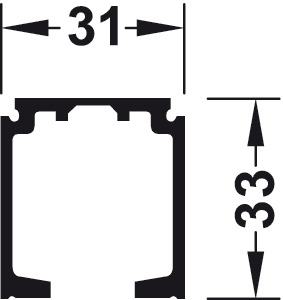 Hafele 940.43.962 Single Running Track, Pre-drilled, 31 x 33 mm Width x Height, 19' 8-1/4" (6 m) Length, Aluminum, Clear Anodized