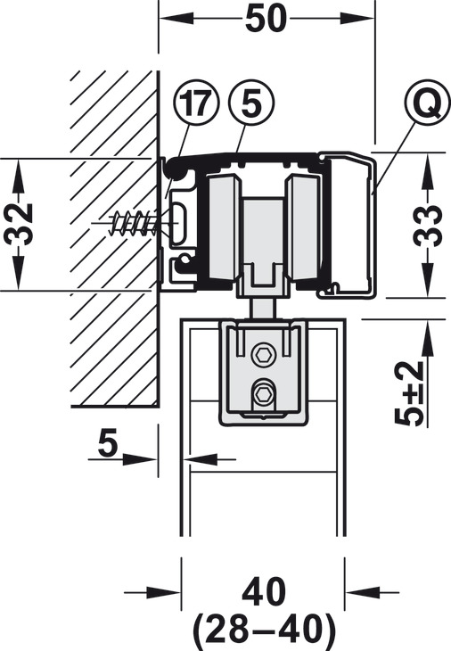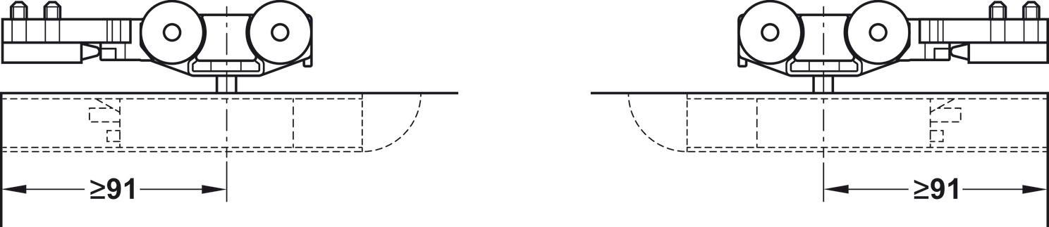 Hafele 940.44.004 Sliding Door Hardware, Slido D-Line11 50I, Set without Running Track, Without Soft and Self Closing Mechanism, For Door Leaf Weights up to 50 kg (110 lbs.), Door width = 500 mm (19-11/16"), Set