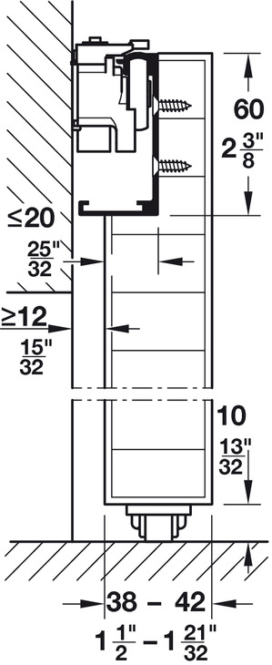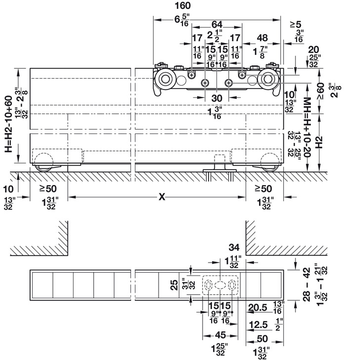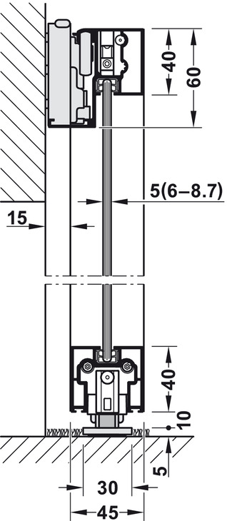 Hafele 940.59.813 Guide track, for soft floors, Slido Design 80-M, 11' 9-3/4" Length, Aluminum, Black Anodized
