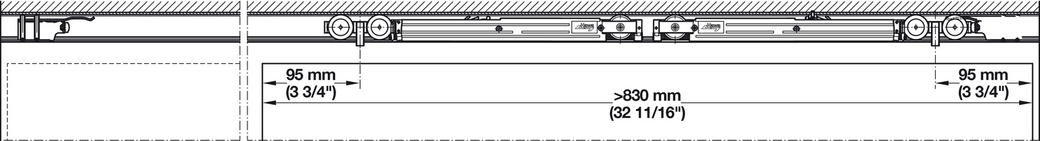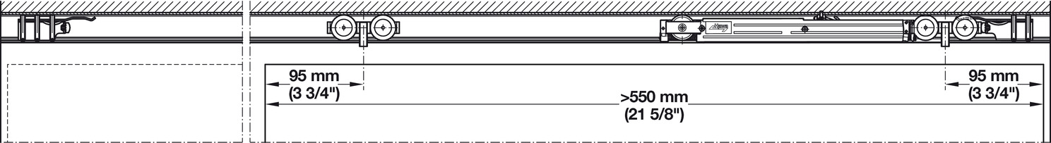 Note: A second track buffer is required where the soft closing mechanism is installed on both sides. Please order separately.