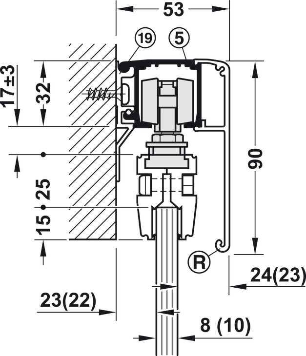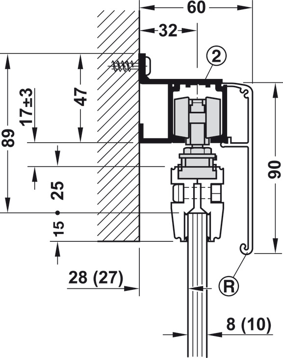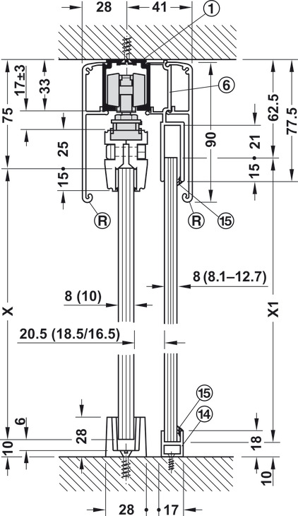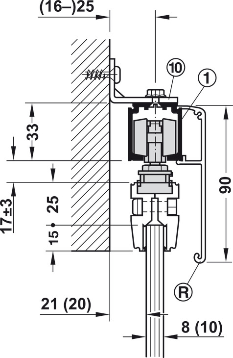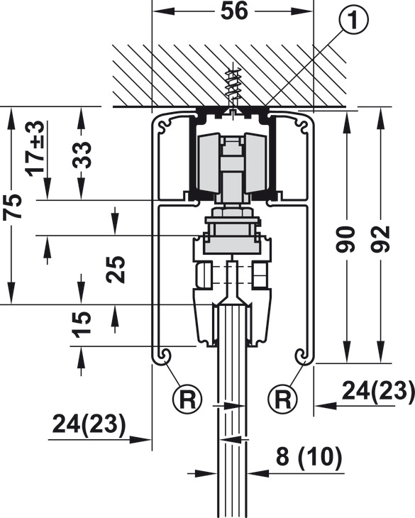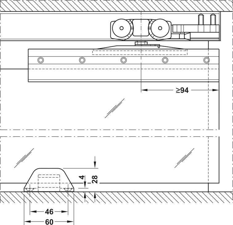 Hafele 940.82.140 Sliding Door Fitting, Häfele Slido R-Aluflex 80A, Top Running, For Sliding Doors With Frame, Floor to Ceiling, Ceiling Installation and Wall Mounting, Height Adjustable, Without Soft and Self Closing Mechanism, Set