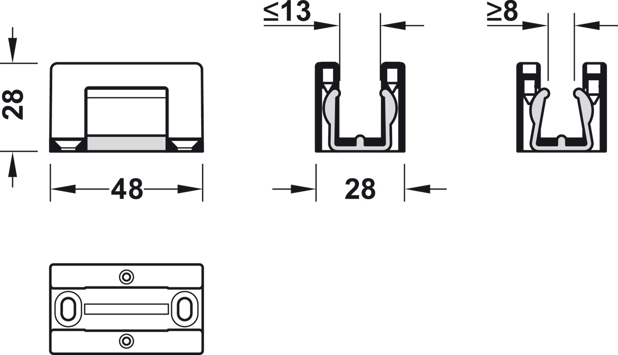• Single Running Track, Pre-drilled, W x H: 47.5 x 47 mm (1-7/8" x 1-27/32"): 940.43.930