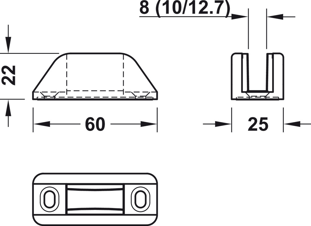 • Double Running Track, Pre-drilled, W x H: 70 x 33 mm (2-3/4" x 1-5/16")