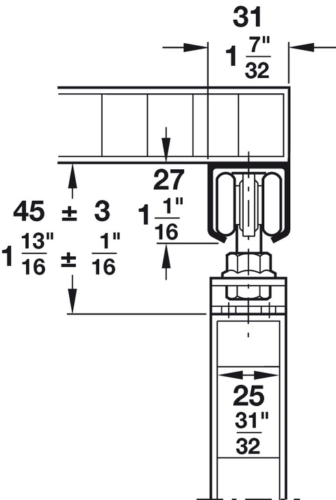 Hafele 940.84.200 Upper Track, Pre-Drilled, for T-snap, 2 m Length, Aluminum, Bright