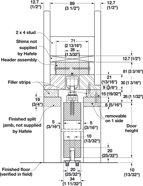 Hafele 940.94.003 Pocket Door Framing Kit, Futura, Type III, for Junior 40Z and 80Z
