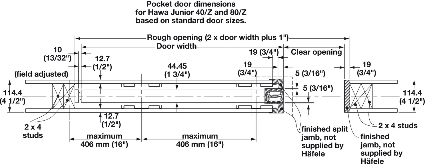 Hafele 940.94.101 Pocket Door Framing Kit With Jr. Sliding Hardware, Type I, Set