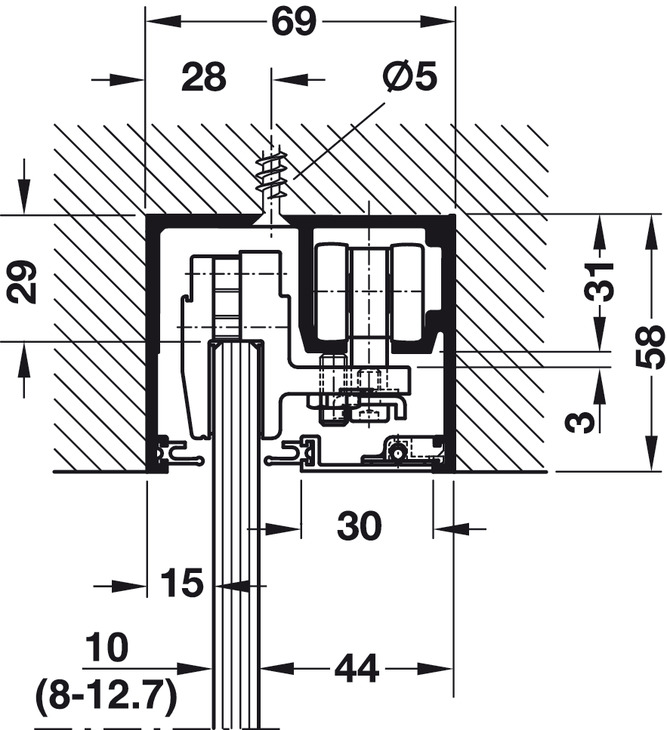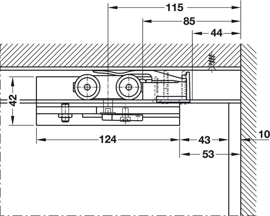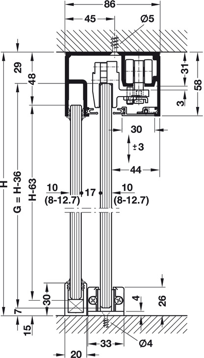 Required products: - Upper Track, With fixed glass fixing profile, 86 x 58 mm pre-drilled: 941.00.256, 941.00.356, 941.00.606