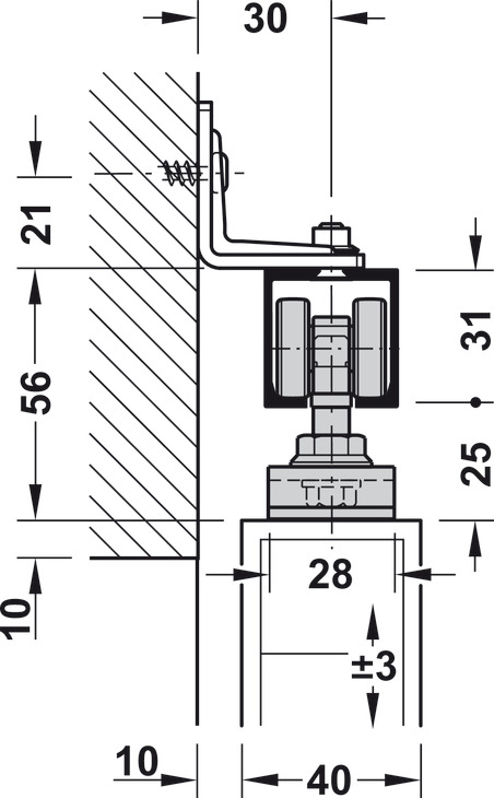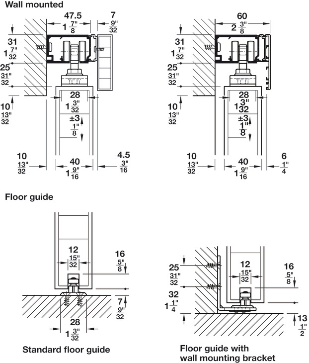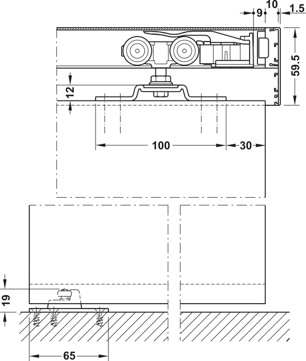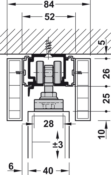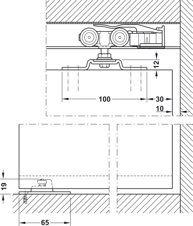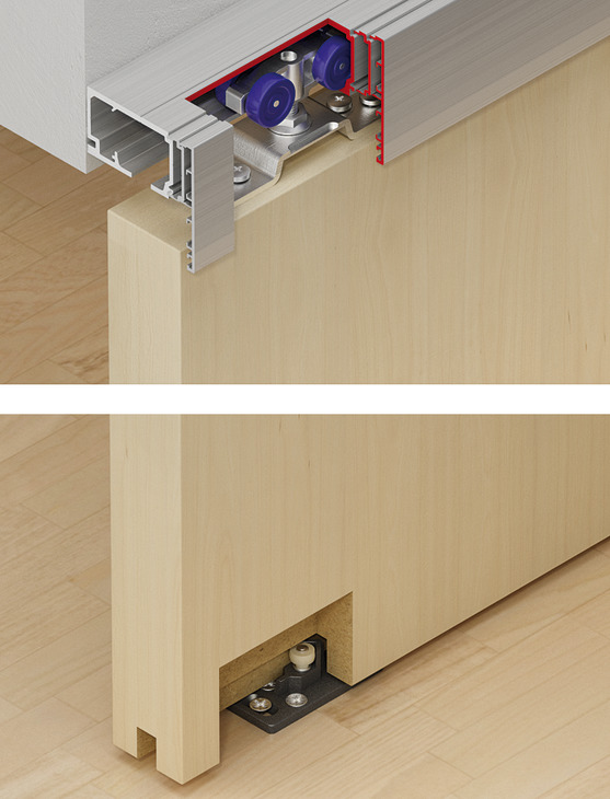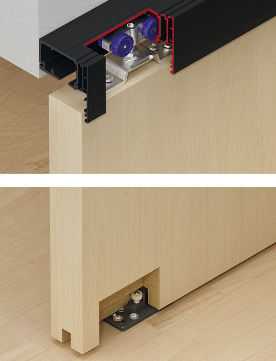 Hafele 941.00.054 Sliding Door Fitting, Hawa Porta 60/100 HC, For 1 and 2-Leaf Wooden Sliding Doors, Ceiling and Wall Installation, Soft and Self Closing Mechanism (Optional), Set