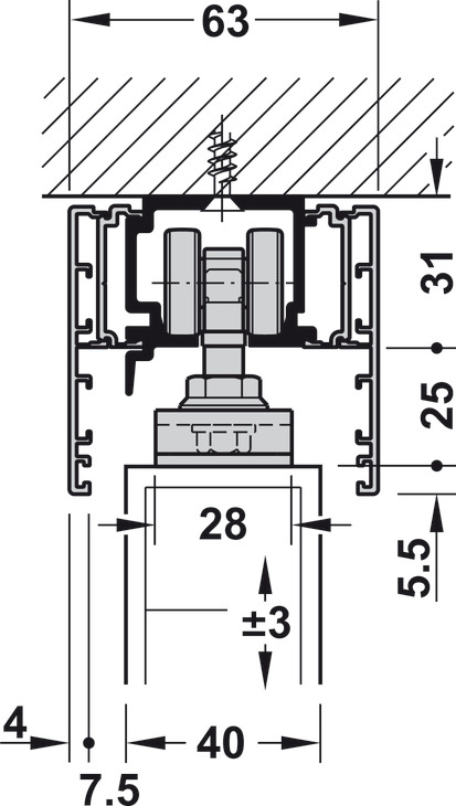 Single Running Track, Pre-drilled, For Wall Mounting or Ceiling Installation, W x H: 39 x 41 mm (1-17/32" x 1-5/8")