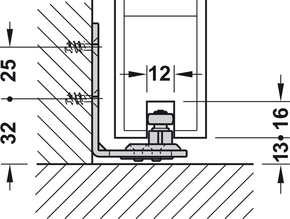 Upper Track, Pre-drilled, W x H: 30 x 31 mm (1-3/16" x 1-7/32")