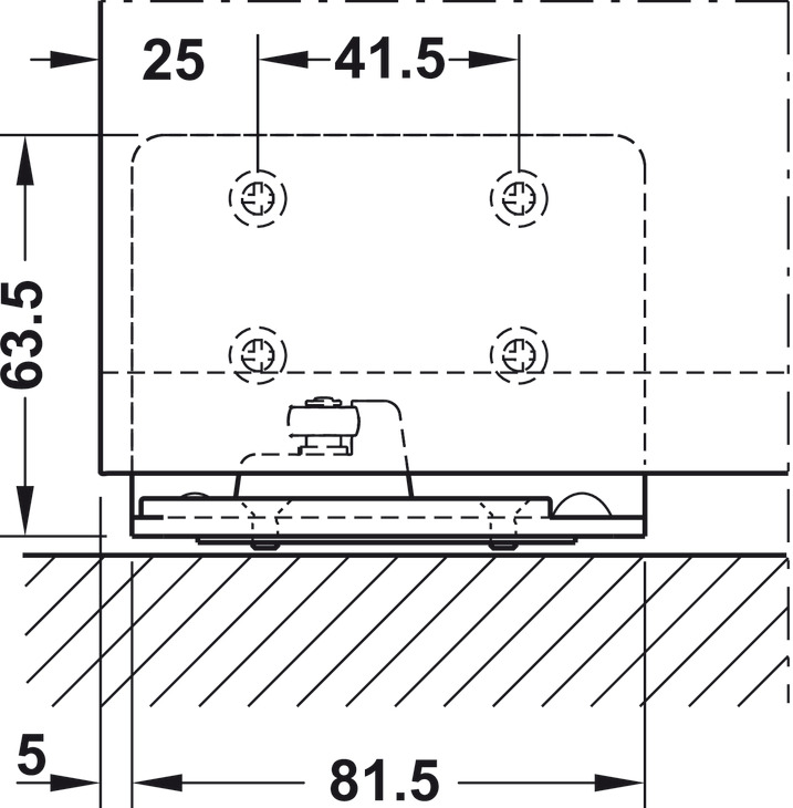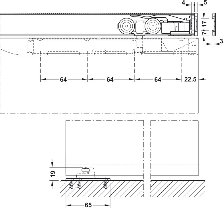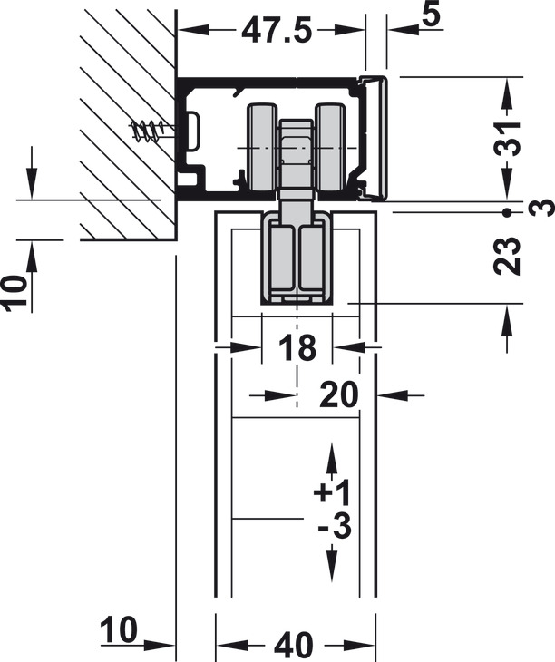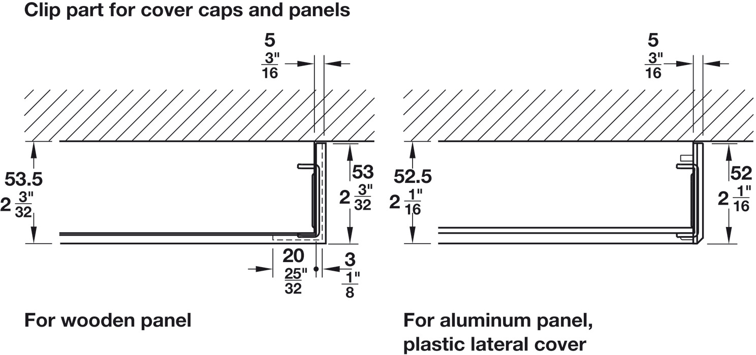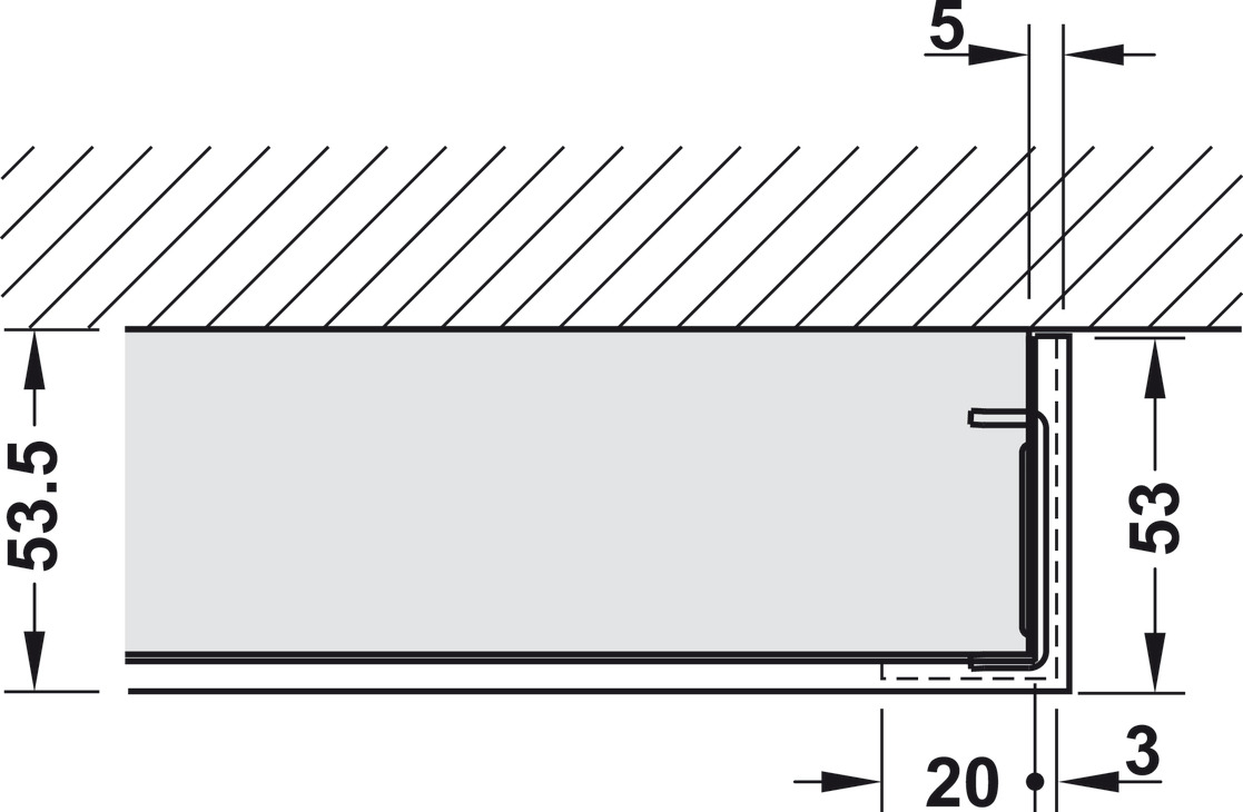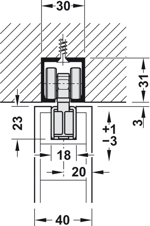 • Running Track, With Recess for Installation Opening, Pre-drilled, W x H: 30 x 31 mm (1-3/16" x 1-7/32"): 941.00.251