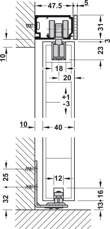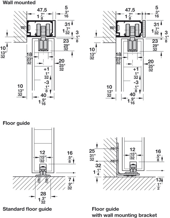 • Upper Track, Pre-drilled, W x H: 30 x 31 mm (1-3/16" x 1-7/32")