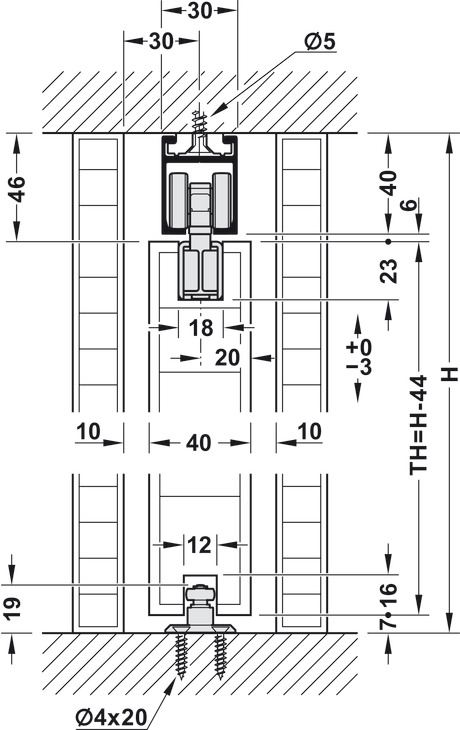 1 Running track, pre-drilled, 2000 mm (6' 6-3/4") x 30 mm (1-3/16") x 40 mm (1-9/16") (L x W x H)
