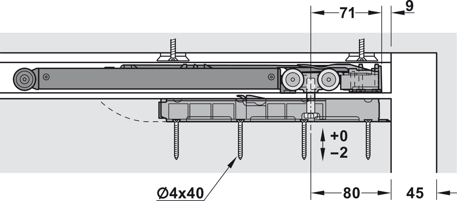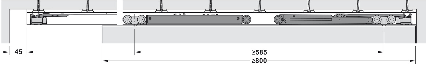 Hafele 941.00.061 Sliding Door Fitting, Hawa Porta 100 HMT Pocket, Set with Running Track, For 1-Leaf Wooden Sliding Doors, Ceiling Installation, Installation in Wall Pocket, Set