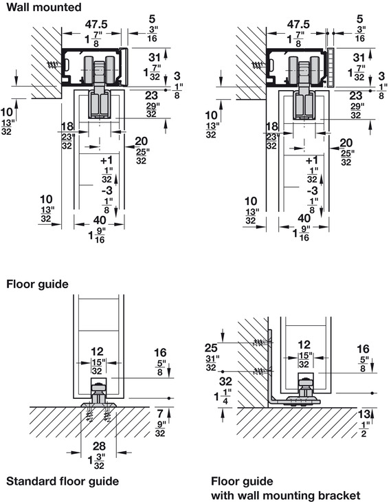Adjustment: Door height adjustable +1/-3 mm (+ 1/32/-1/8")