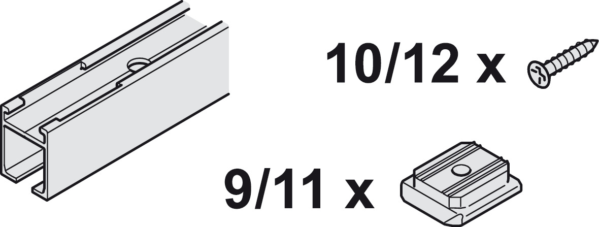 Hafele 941.00.622 Track Set, Hawa Porta Pocket, With Running Track, Pre-drilled, 2000 mm (6' 6-3/4") Length, Aluminum, Silver Colored Anodized