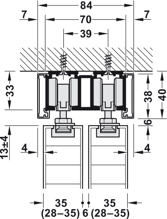 Double Running Track, Pre-drilled, W x H: 70 x 33 mm (2-3/4" x 1-5/16")