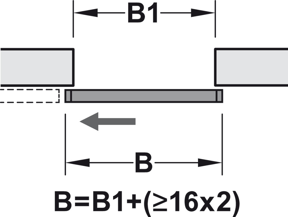 For glass thickness with tempered safety glass: 6 mm (15/64"), 8 mm (5/16"), 5 mm (13/64")