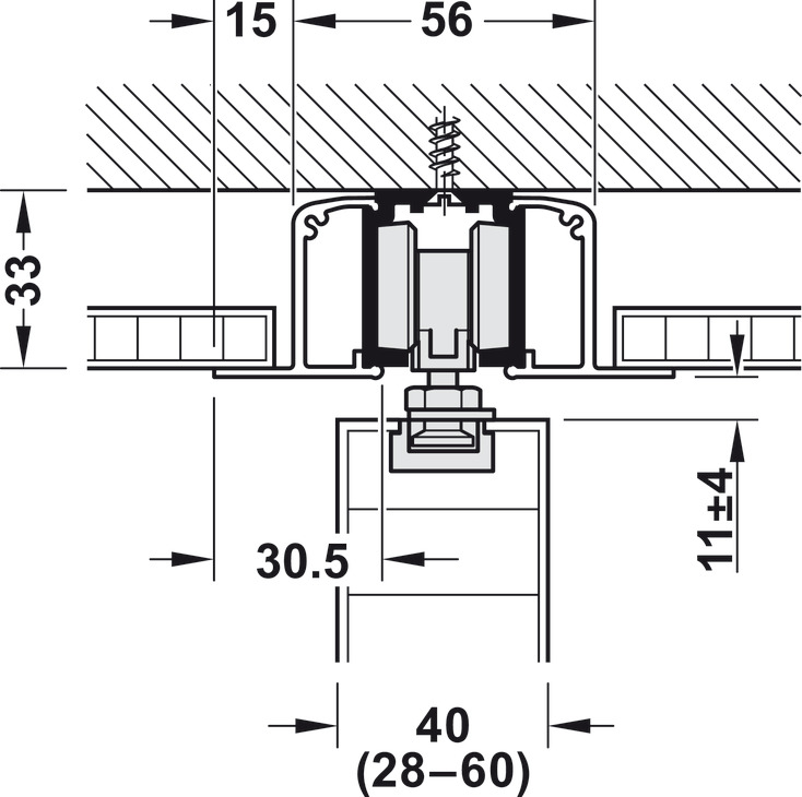 Hafele 941.02.048 Sliding Door Hardware, Slido D-Line11 120C, Set Without Running Track, For Door Weight up to 120 kg (264 lbs.), Set