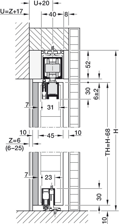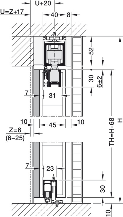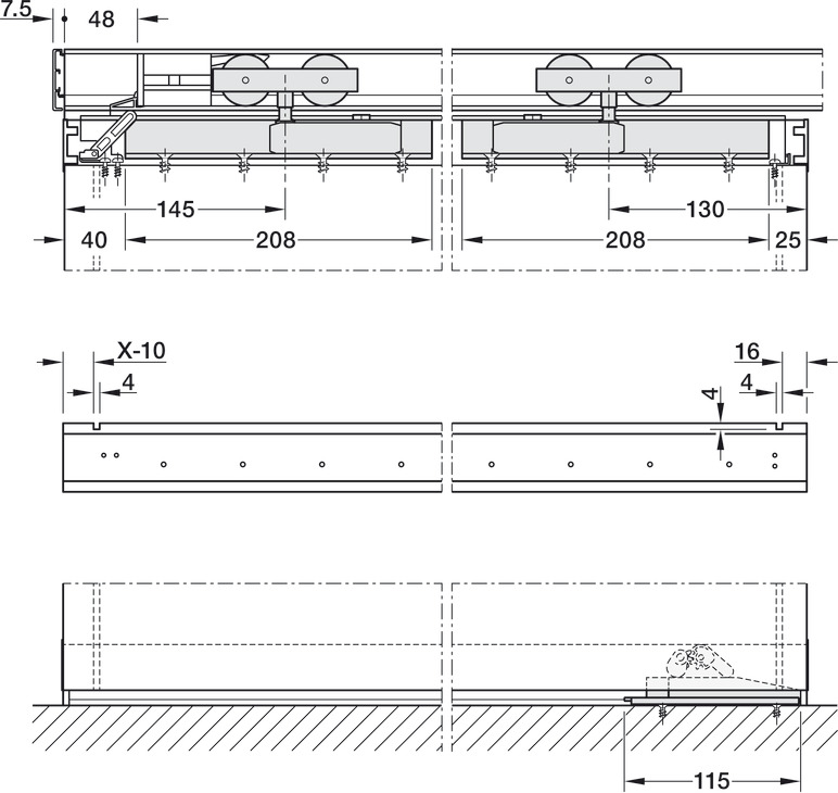 Installation: Suspension with suspension carriage, suspension with recessed support profile