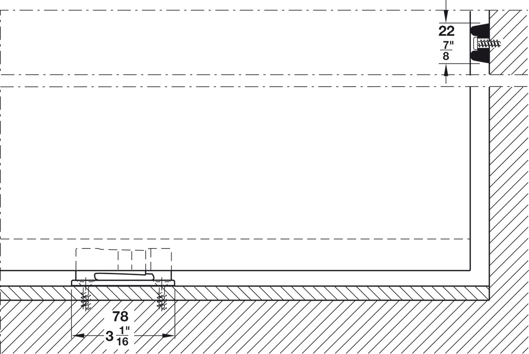 For door thickness: = 35 mm (1-3/8")