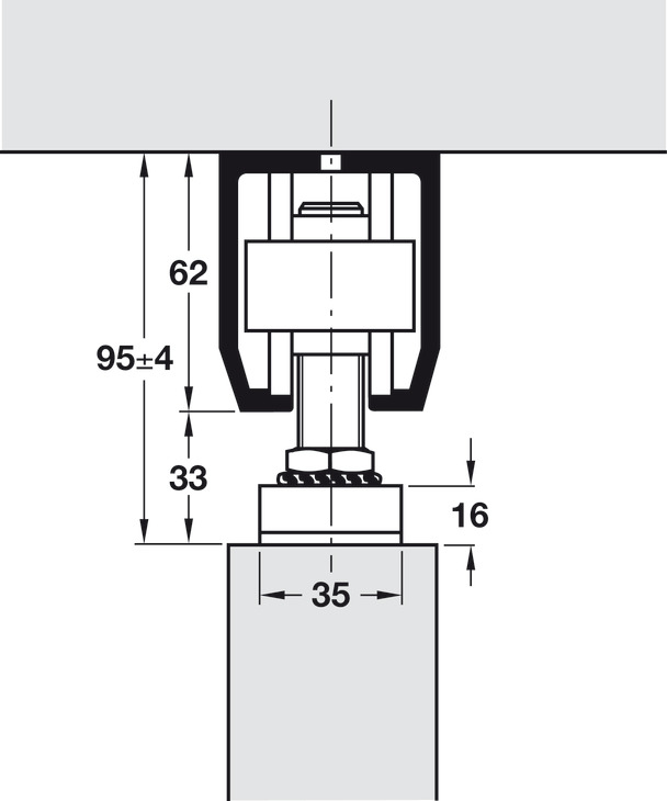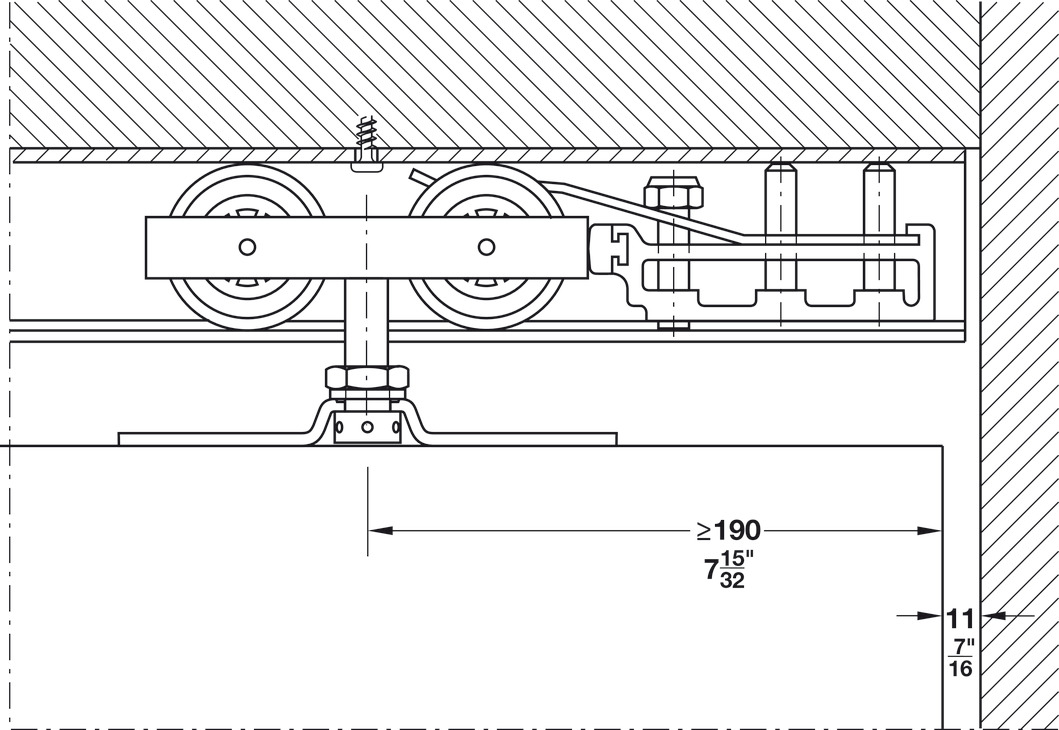 Hafele 941.60.006 Sliding Door Hardware, Top Hung System, Hawa Junior 160/A, With 1 Track Buffer/1 Wall Buffer, For = 35 mm (1-3/8") Door Thickness, Set