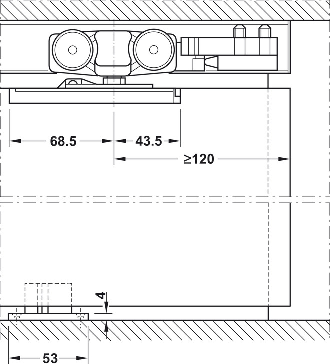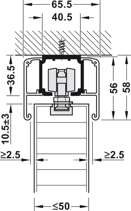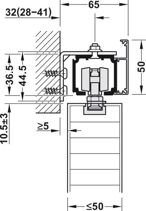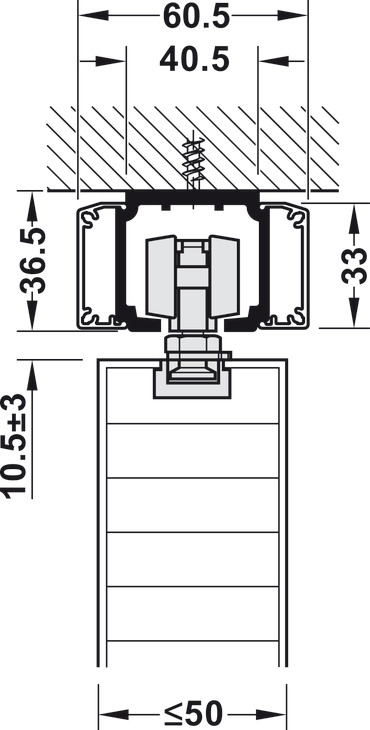 • Running Track, Häfele Slido D-Line11, Pre-drilled