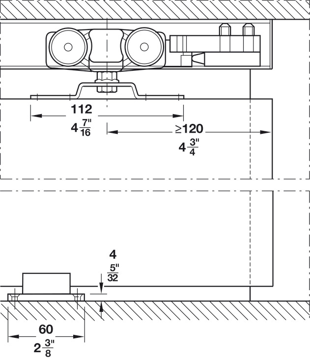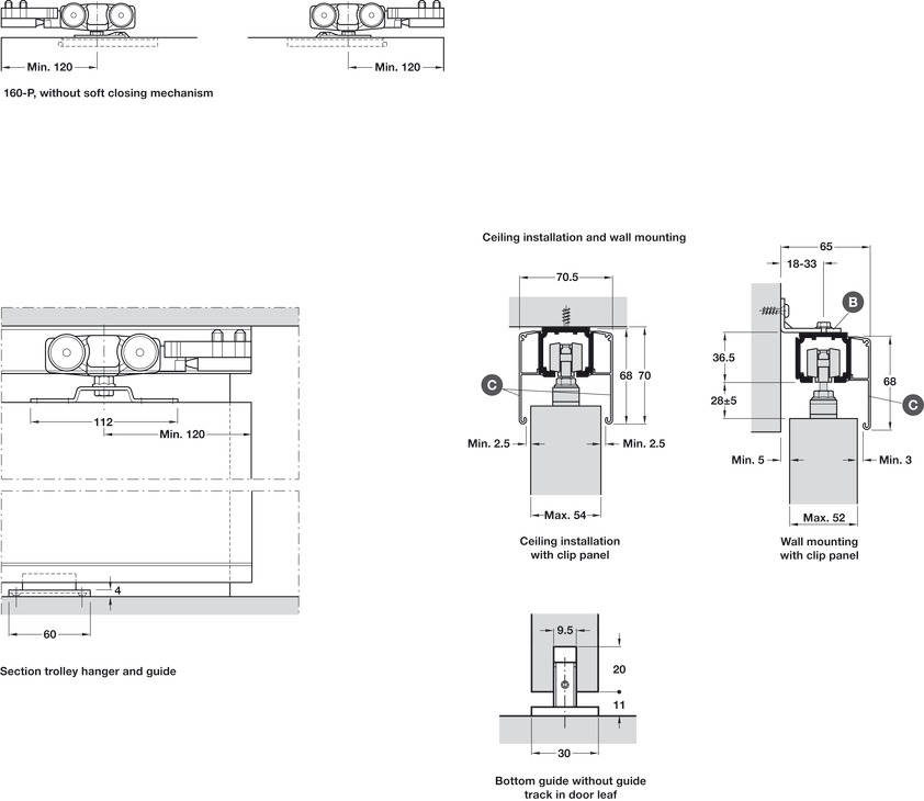 Hafele 941.62.010 Sliding Door Hardware, Slido D-Line11 160C, For 1-Leaf Wooden Sliding Doors, Ceiling and Wall Installation, Height Adjustable Doors, For Door Weight up to 160 kg (352 lbs.), Set