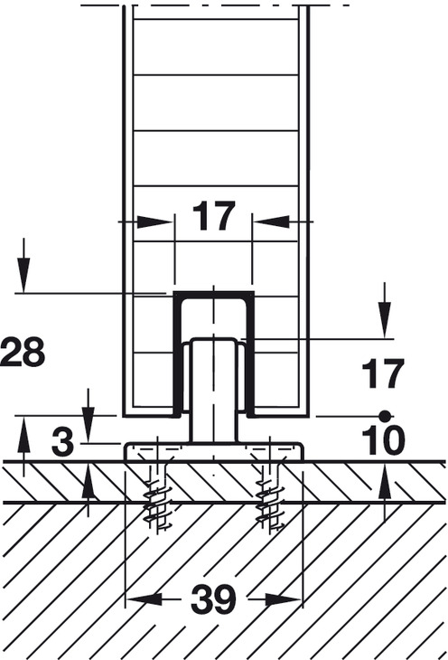 Upper Track, Pre-drilled, Aluminum: 68 mm: