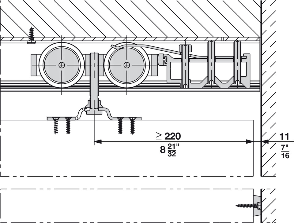Hafele 942.56.001 Sliding Door Hardware, HAWA Junior 250/A, with 1 track buffer/1 wall buffer, Set