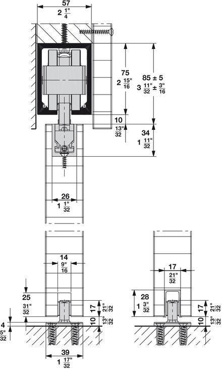 Application: For 1-leaf and 2-leaf sliding wood doors