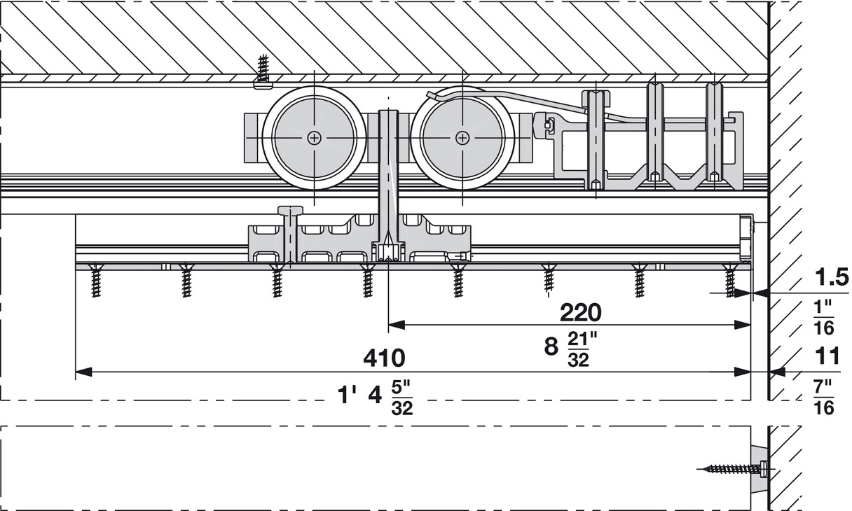 Hafele 942.56.002 Sliding Door Hardware, HAWA Junior 250/B, Top Hung System, with 1 track buffer/1 wall buffer, Set