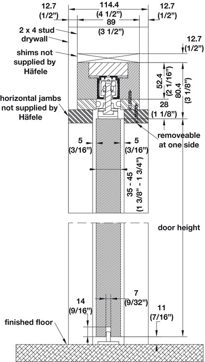 Hafele 942.72.000 Pocket Door Frame Set, Slido, for 80" tall door