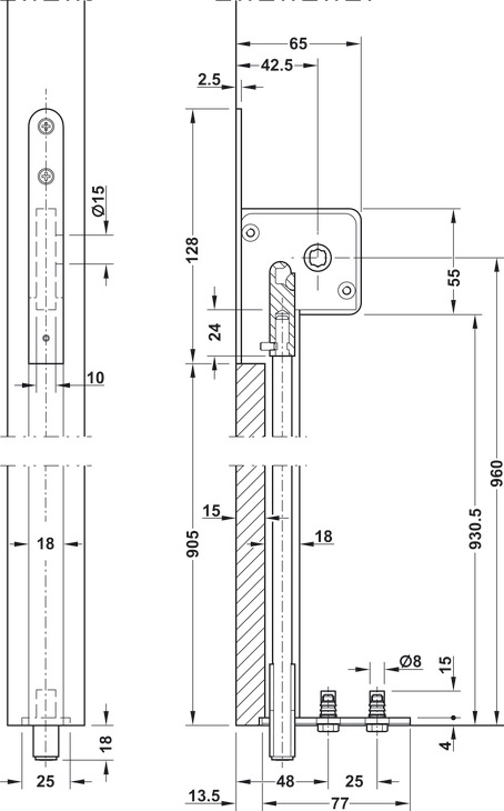Area of application: For locking and holding position of folding and concertina walls
