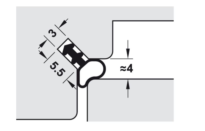 Installation dimensions: Groove: 3 x 5.5 mm, striking gap: 4 mm