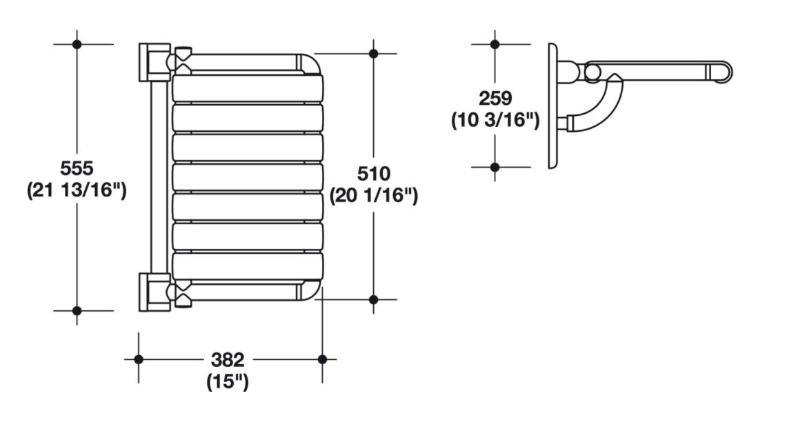 Hafele 980.20.099 Folding Shower Seat, 555 mm Width, HEWI 801 Series, Pure white