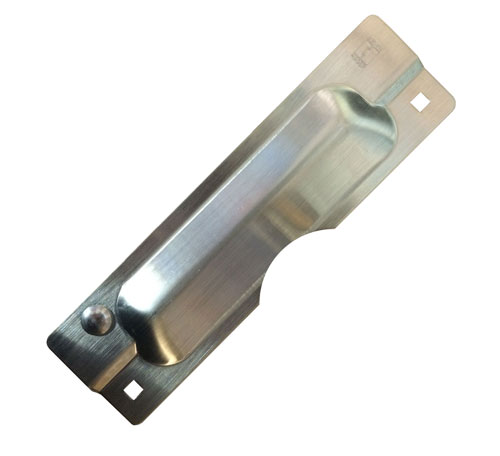 5/8" x 6" silver coated latch guard for inswinging doors.