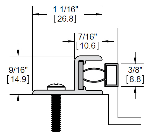 Magnetic Weatherstrip, Material: Aluminum, Finish: Mill, Length: 96", Width: 1 1/16", Height: 9/16"