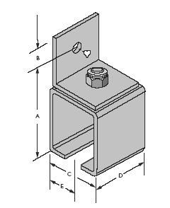 Dimensions: A = 3-3/8 ", B = 3/4 ", C = 2 ", D = 1-5/8", E = 1"