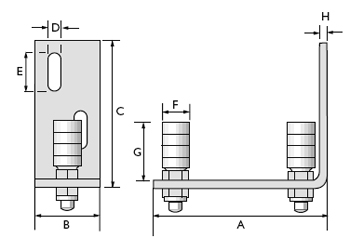 Dimensions: A = 5-3/8 ", B = 2 ", C = 4-1/2", D = 3/8", E = 1", F = 7/8", G = 2-3/8", H = 1/8"