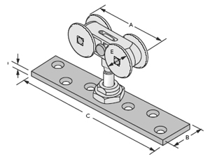 Dimensions: A = 5-3/8 ", B = 1-1/2 ", C = 7-3/8", D = 1/8", E = 2"
