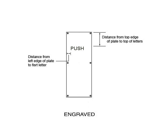 Engraving: "PUSH" - 3/4" letters with black enamel fill - specify location